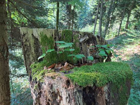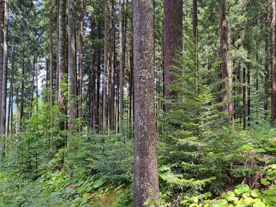 Der Wald beheimatet rund 40% der einheimischen Tier- und Pflanzenarten. Neben dieser grossen Artenvielfalt und dem natürlichen Lebensraum, bindet der Wald auch Kohlenstoff. Insbesondere Waldbestände mit viel Alt- und Totholz, lichte Waldstrukturen an Extremstandorten und feuchte Wälder entlang von Flüssen, Bächen oder Quellstandorten sind ein Hotspot für die Waldbiodiversität. Die Bergwälder im Frutigland bieten durch ihre reichhaltige Struktur, die verschiedenen Höhenlagen und Expositionen Lebensraum für naturnahe und vielfältige Laub-, Misch- und Nadelwälder. An der Waldgrenze wachsen Lärchen- sowie Arvenbestände, auf Trockenstandorten Föhrenwälder und in luftfeuchten Gräben einzigartige Eibenbestände.