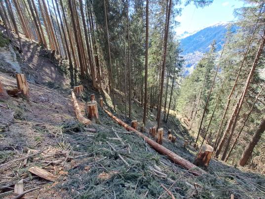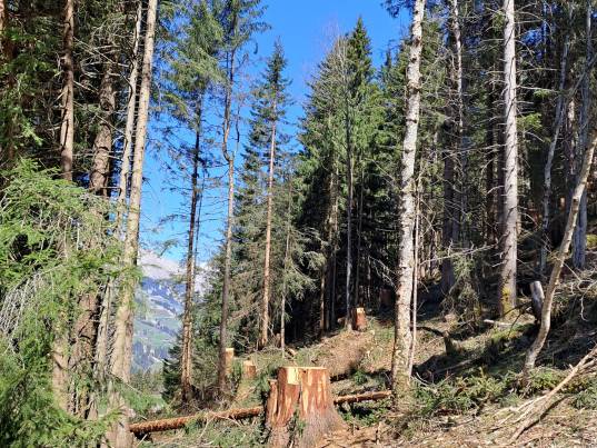 Damit der Schutzwald seine Funktion nachhaltig erfüllen kann braucht er je nach Zustand professionelle Pflege.