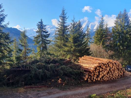 Das Holz, welches in Schutzwaldprojekten und weiteren Forstprojekten anfällt wird durch die Geschäftsstelle Forst Frutigland möglichst regional vermarktet.